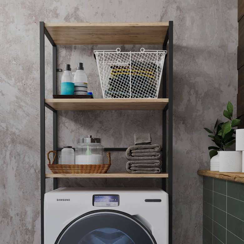 Banyolarda çamaşır makinesi üzerine monte edilerek deterjan, yumuşatıcı ve diğer banyo malzemelerinin düzenli bir şekilde saklanmasını sağlar.