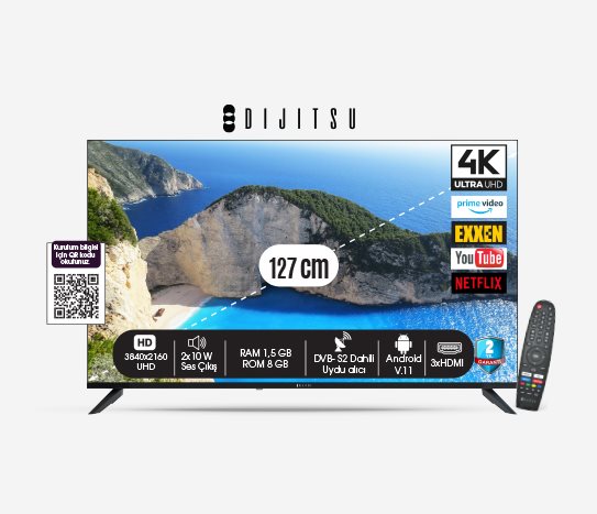 BİM'de bulabileceğiniz Dijitsu 43DS10000 modeli, Full HD çözünürlüğü ve Android işletim sistemi ile evinizi eğlence merkezine dönüştürüyor. Smart TV özellikleriyle internete bağlanabilir, favori uygulamalarınızı kullanabilirsiniz.