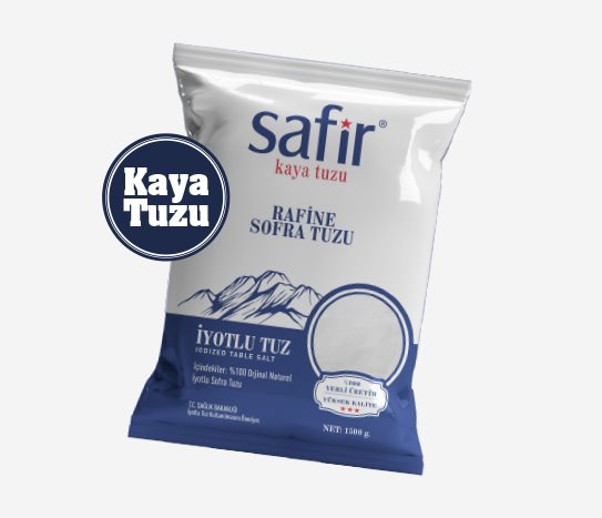 Safir Kaya Tuzu, doğal kaya tuzu yataklarından elde edilmektedir. Elde edildiği bölge belirtilmemiştir.