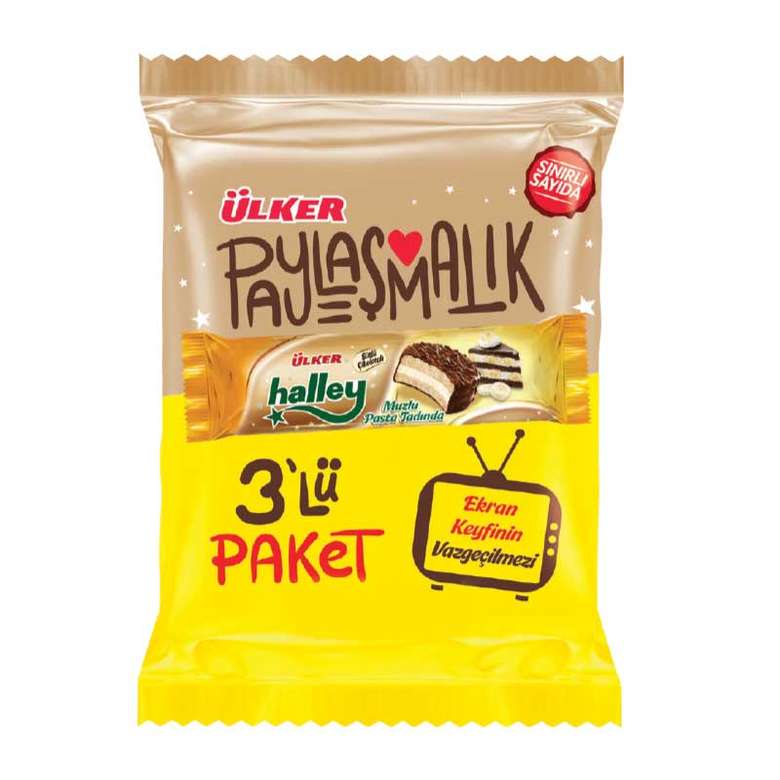Ülker Halley'in eşsiz lezzeti şimdi muz aromasıyla buluştu! Yumuşacık keki, krema dolgusu ve muzlu tadıyla Halley, BİM'de sizleri bekliyor. Pratik ve lezzetli bir atıştırmalık arayanlar için ideal.